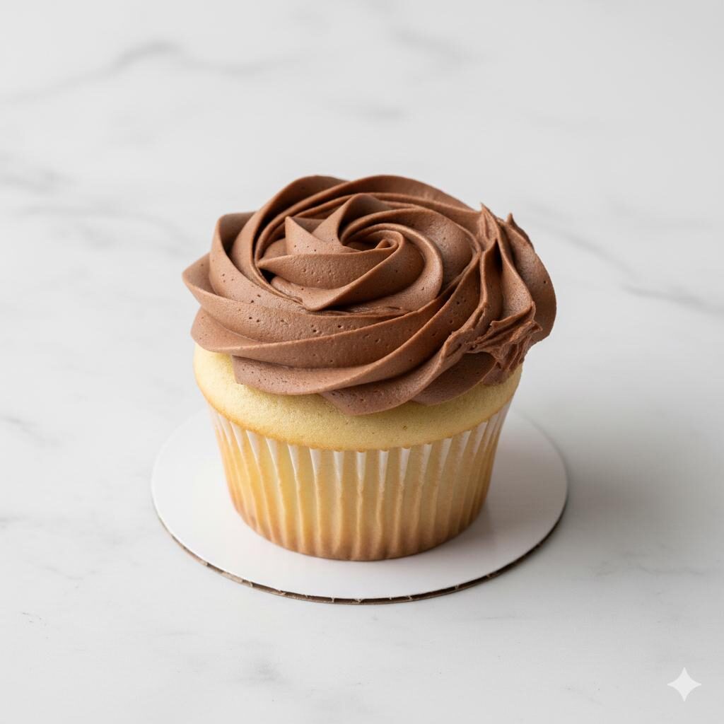 Soft vanilla cupcake topped with smooth chocolate frosting.
